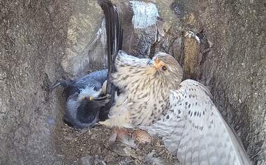 L’année dernière, la maman crécerelle a perdu un de ses œufs à cause d’un choucas affamé. Elle ne voulait plus que cela se reproduise.